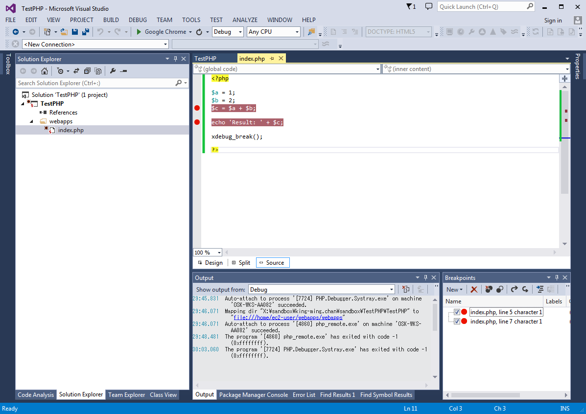 | Summary | 0001169: xDebug not stopping at breakpoint | ||||