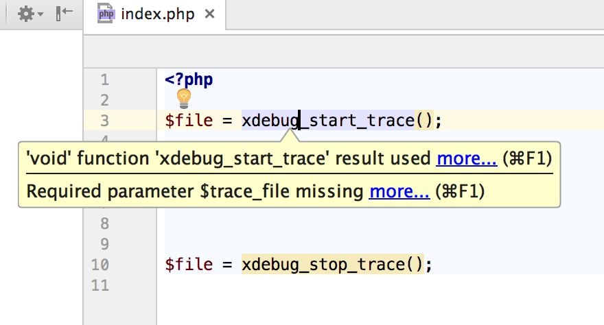 | Steps To Reproduce | <?php $file = xdebug_start_trace(); $file = xdebug_stop_trace(); | ||||