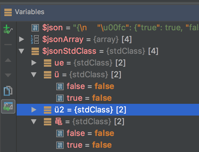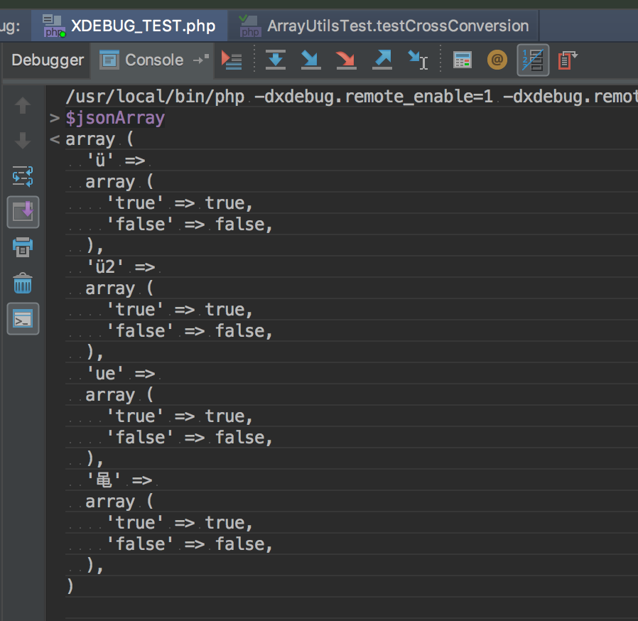 | Summary | 0001527: true shown as false in PhpStorm Debug->Variables view under UTF-8 Keys (array, stdClass) | ||||