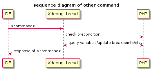 Hi, I'm not intending to change the protocol, as it is in use by many IDEs as well as other language engines. The DBGp protocol allows for async debuggers, but Xdebug currently does not implement this yet: https://xdebug.org/docs-dbgp.php#asynchronous-communications There is also an issue in this issue tracker: https://bugs.xdebug.org/view.php?id=1016 cheers, |