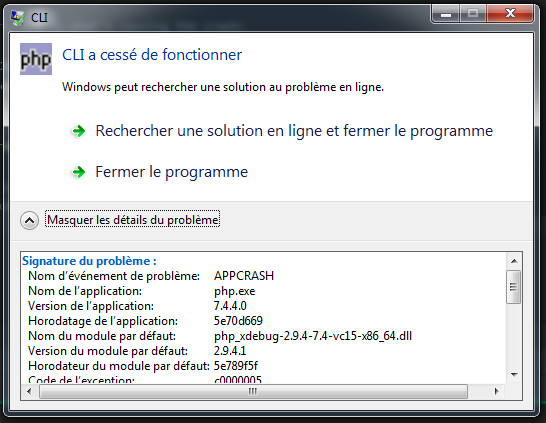 for sake of clarity here's the steps again: 1) Download "xdebug_crash.rar" above and extract content in "c:\xdebug_crash\" |