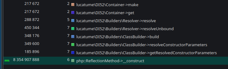 | Description | Reflection is used, for instance, on DI containers with autowiring. For the DI Container to autowire, it needs to call ReflectionMethod($class, '__construct') to get an instance of the constructor. This call becomes extremely expensive if Xdebug is active on "develop" mode and "var_display_max_children" is unlimited or very high, as per screenshot attached. | ||||