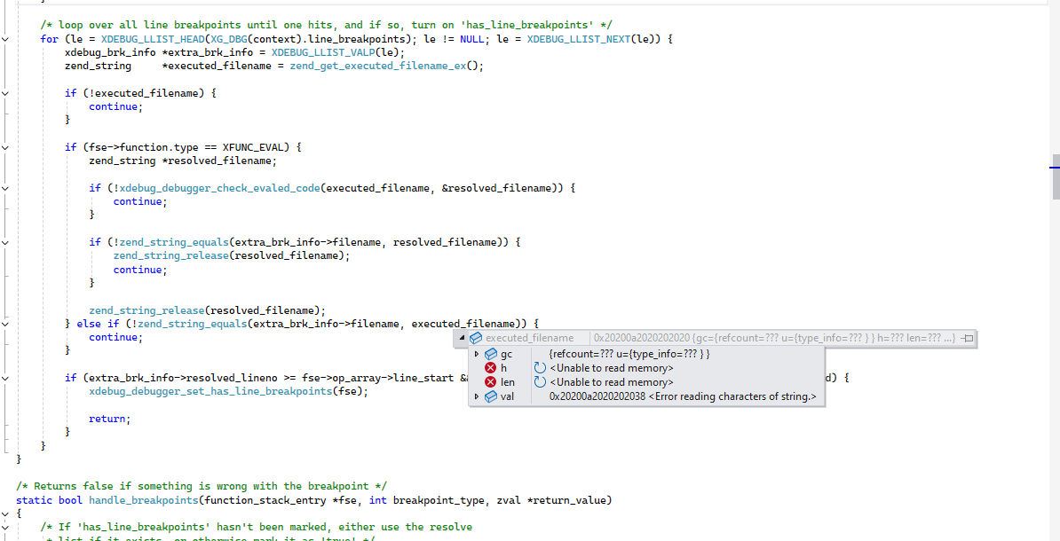 [Inline Frame] php_xdebug.dll!handle_breakpoints(_function_stack_entry ) Line 591 C