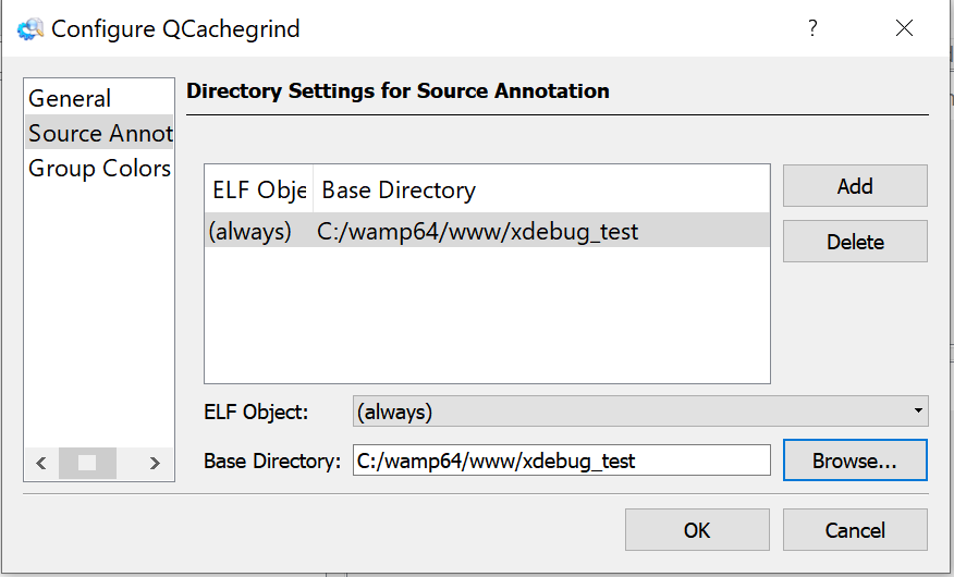 | Description | The file paths for fl= use backslashes and that seems to prevent Qcachegrind/Kcachegrind from showing the code in the Source Code tab. If the backslashes are replaced with forward slashes then Qcachegrind/Kcachegrind will show the code in the Source Code tab as expected, see attached screenshots. I looked at Settings->Configure->Source Annotation in Qcachegrind and tried changing it to the path of the source files but that had no effect. Are you able the change the output paths on windows to use forward slashes / either by default or via a configuration setting? As a quick fix I compiled a modified version of xdebug to use forward slashes and that seems to be working. See attached patch file. Qcachegrind 0.7.4 @ https://sourceforge.net/projects/qcachegrindwin/ | ||||