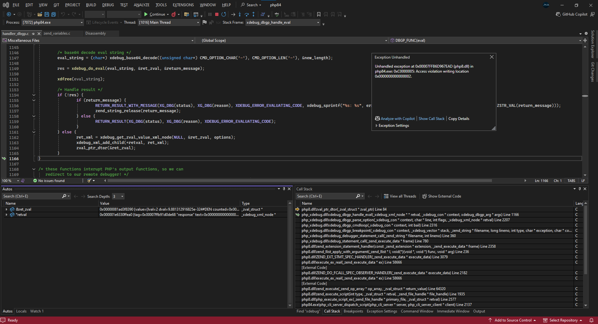 php_xdebug.dll!xdebug_dbgp_handle_eval(_xdebug_xml_node * * retval, _xdebug_con * context, xdebug_dbgp_arg * args) Line 1166 C