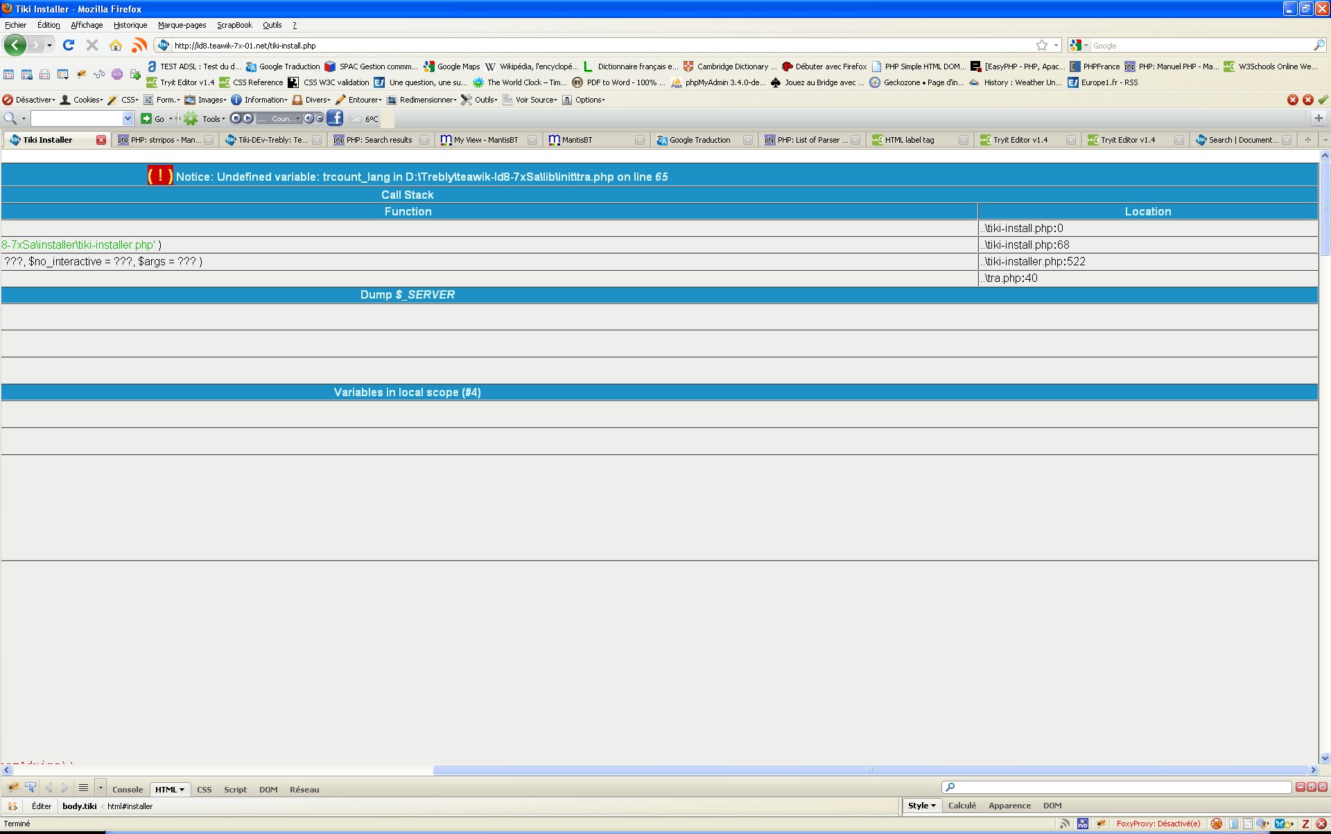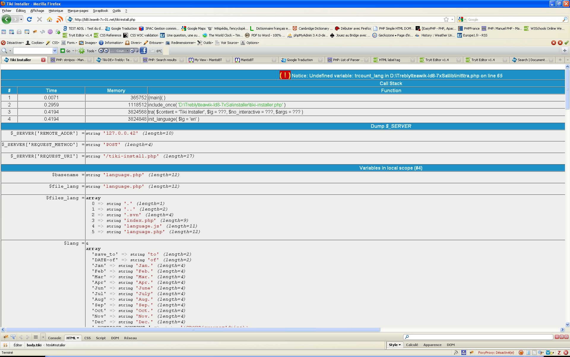 | Description | Since I have upgraded to setting \php_xdebug-2.1.0-5.3-vc6.dll into php.ini The problem seem to be generated by long strings which are not split at the good length to fit the table with large of 100% of the screen (seen as near 10,000px to fill...) | ||||